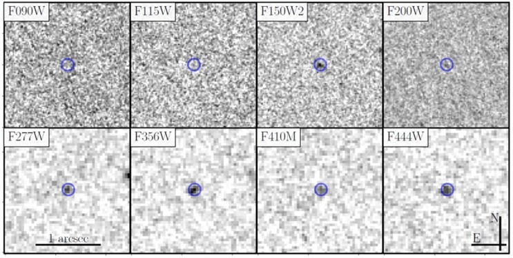 110 days later, the JWST satellite observes the burst position and, using its NIRCam instrument, detects an infrared emission. In the JWST images, the emission seen in the reddest filters is interpreted as the combination of the GRB host galaxy and the emergence of the associated supernova. An additional observation, already scheduled in nine months, should confirm the disappearance of the supernova.